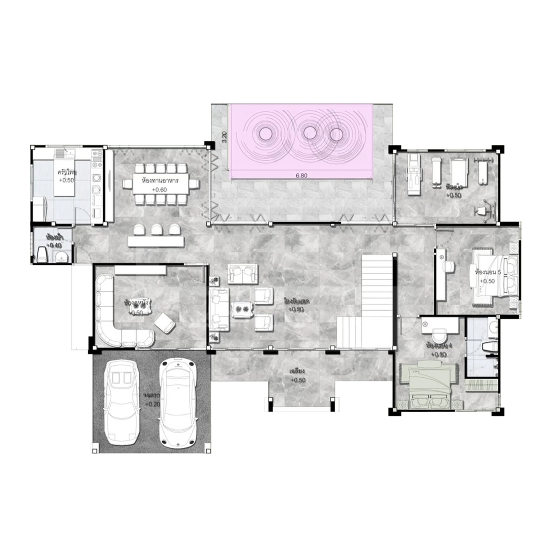 ฟังก์ชันการใช้งาน : 6 ห้องนอน 6 ห้องน้ำ 1 ห้องครัว