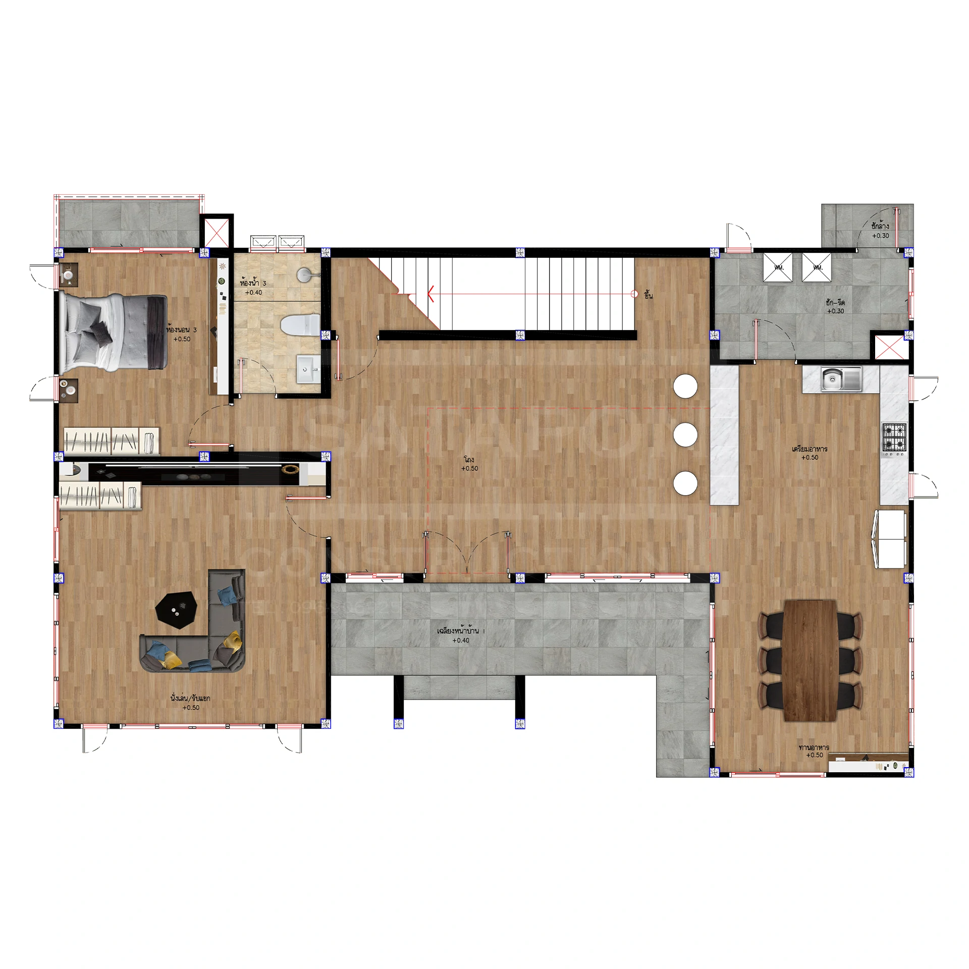 ฟังก์ชันการใช้งาน : 3 ห้องนอน 3 ห้องน้ำ 1 ห้องครัว