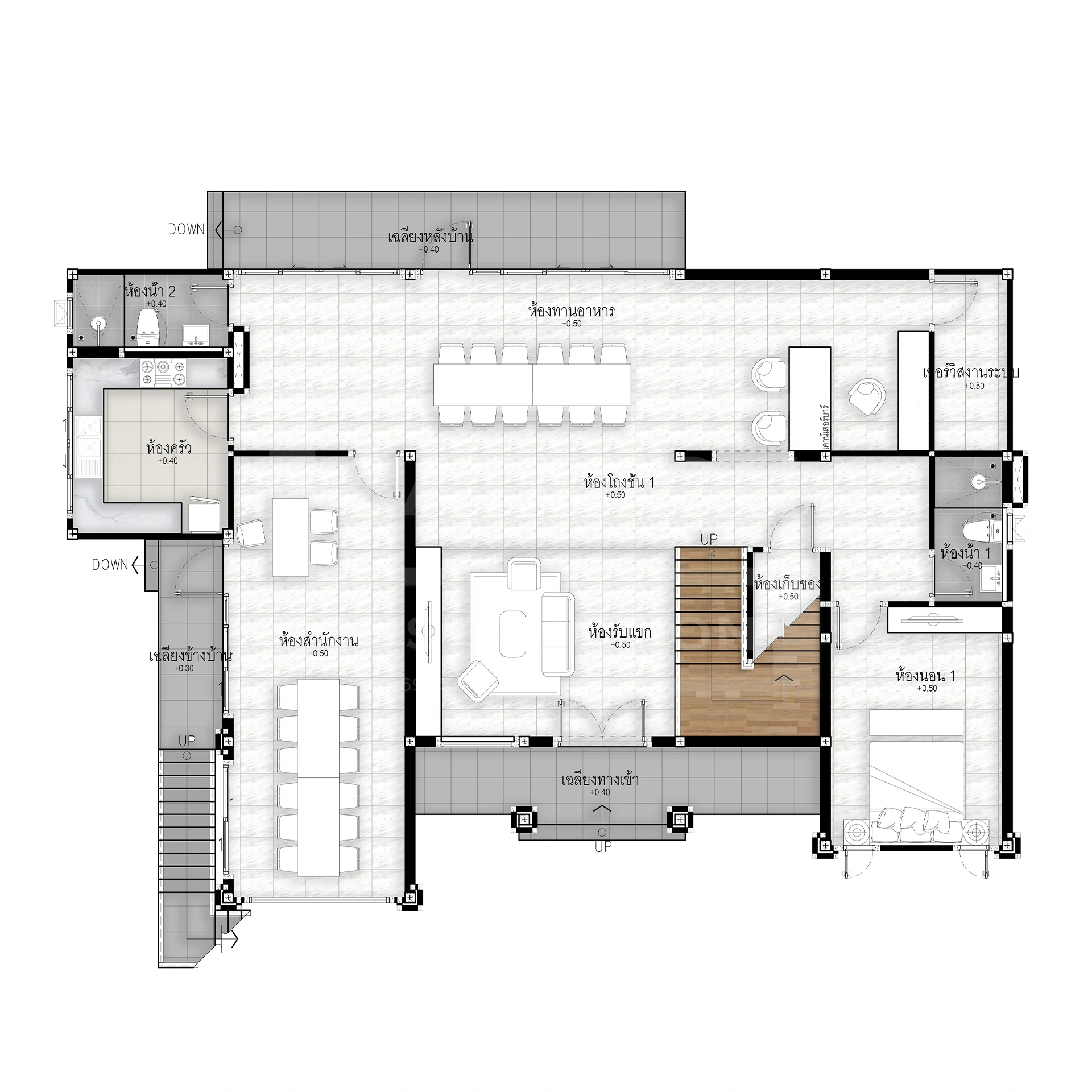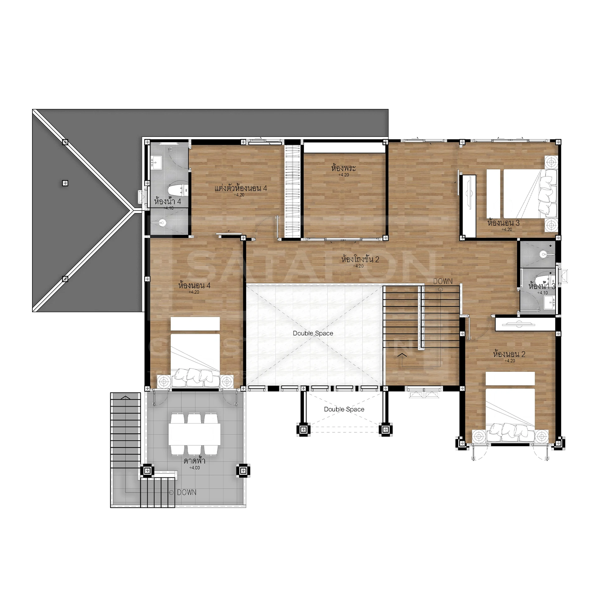 ฟังก์ชันการใช้งาน : 4 ห้องนอน 4 ห้องน้ำ 1 ห้องครัว