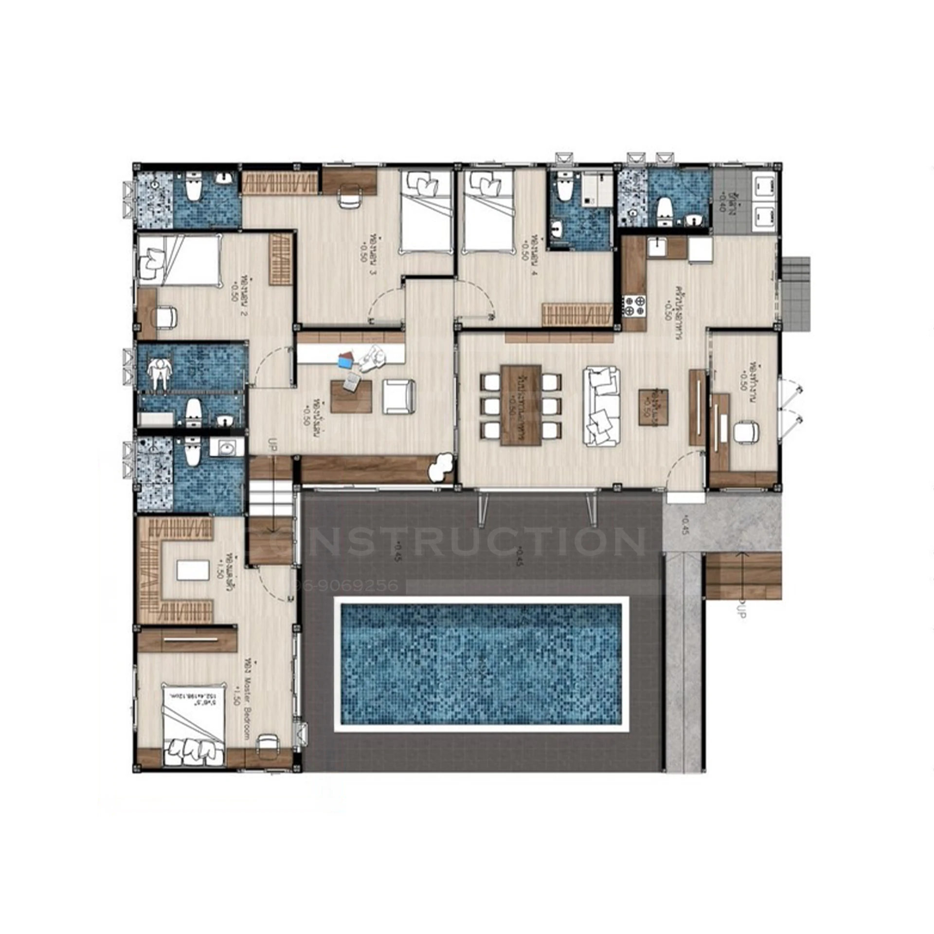 ฟังก์ชันการใช้งาน : 4 ห้องนอน 5 ห้องน้ำ 1 ห้องครัว