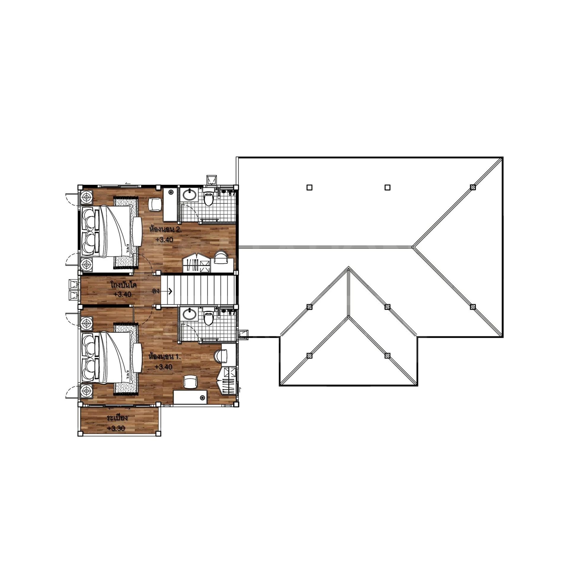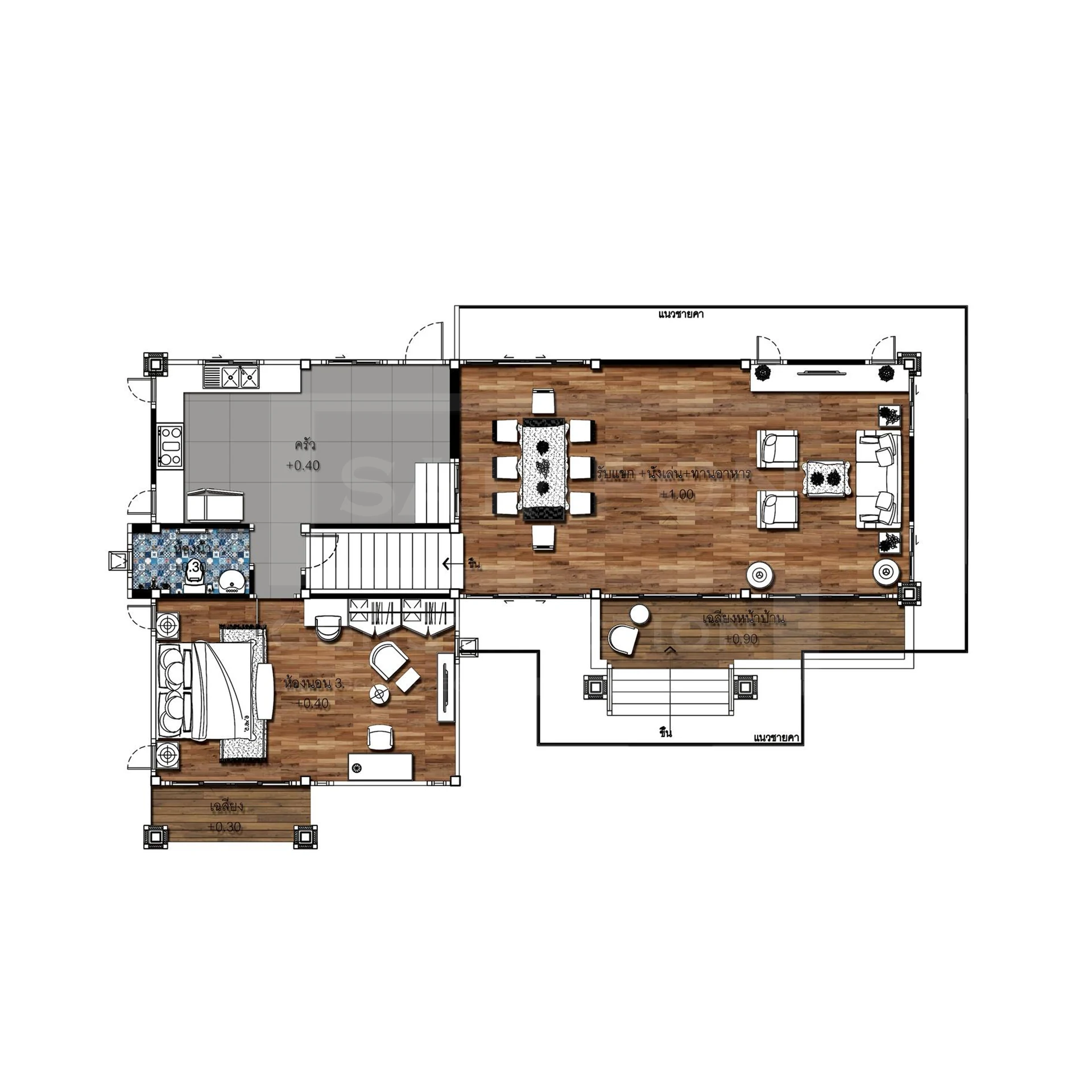 ฟังก์ชันการใช้งาน : 3 ห้องนอน 3 ห้องน้ำ 1 ห้องครัว